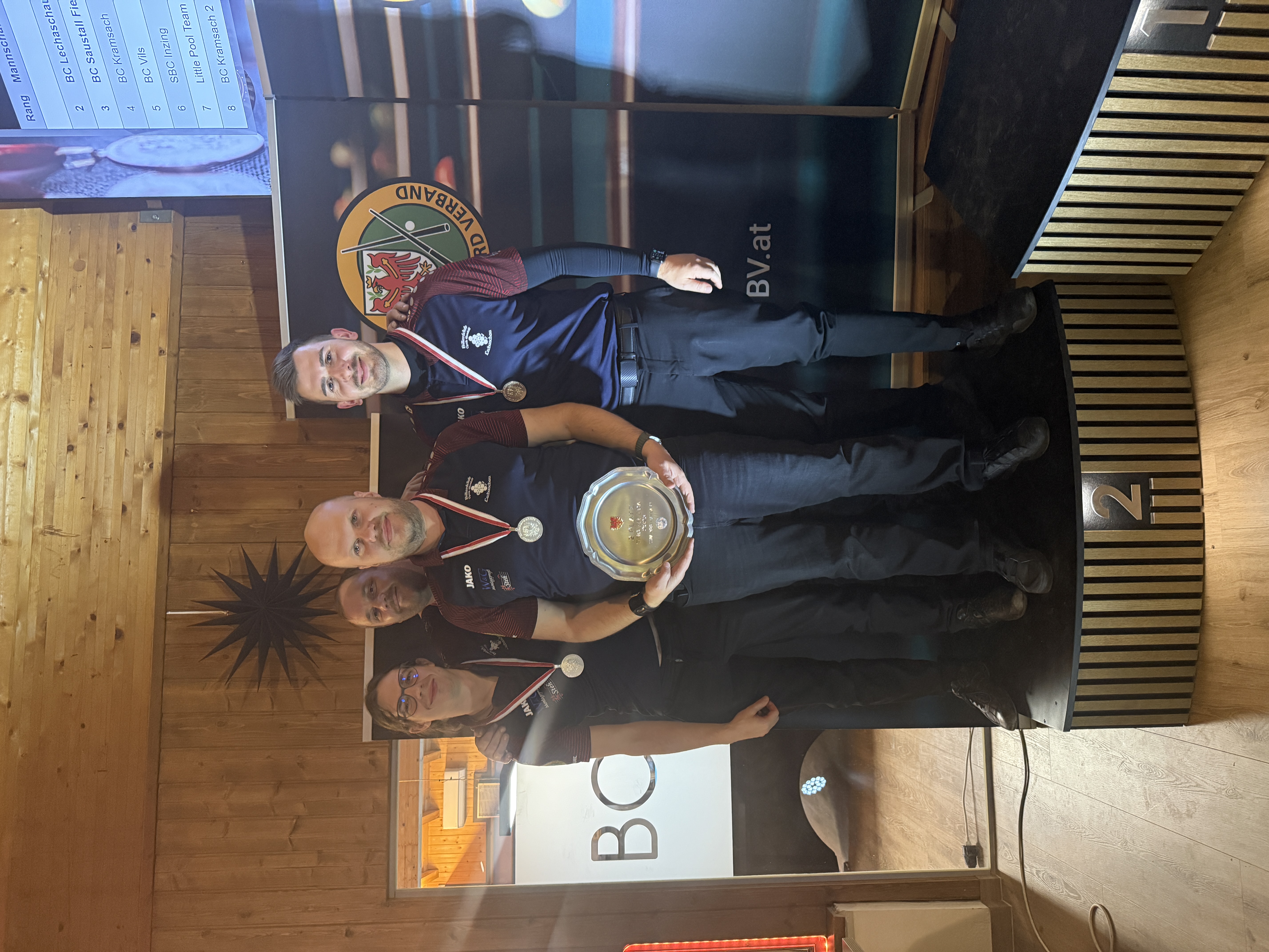 | Nach dem ersten Meistertitel in der höchsten Tiroler Liga im letzten Jahr, legte die erste Mannschaft des Billardclub Optik Gundolf Lechaschau ein starkes Saisonfinish hin und schrammte knapp am zweiten Meistertitel vorbei. Auch die beiden anderen Lechaschauer Mannschaften konnten mit einem dritten und vierten Platz starke Saisons absolvieren. | ![]() |