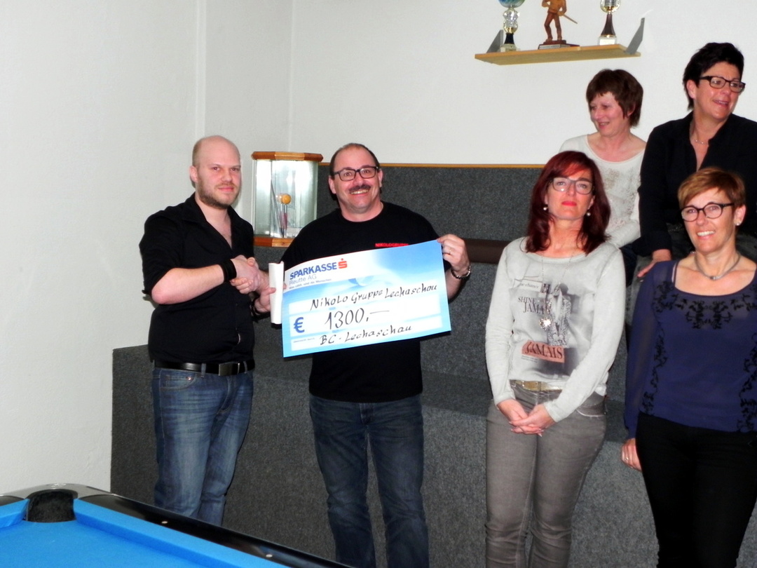 Auch dieses Jahr spendete der Billardclub Optik Gundolf Lechaschau den Gewinn des Nikolostandes am Nikoloumzug der Lechaschauer Nikologruppe. Dieses Jahr konnte sich die Gruppe über stattliche 1300 Euro freuen. |