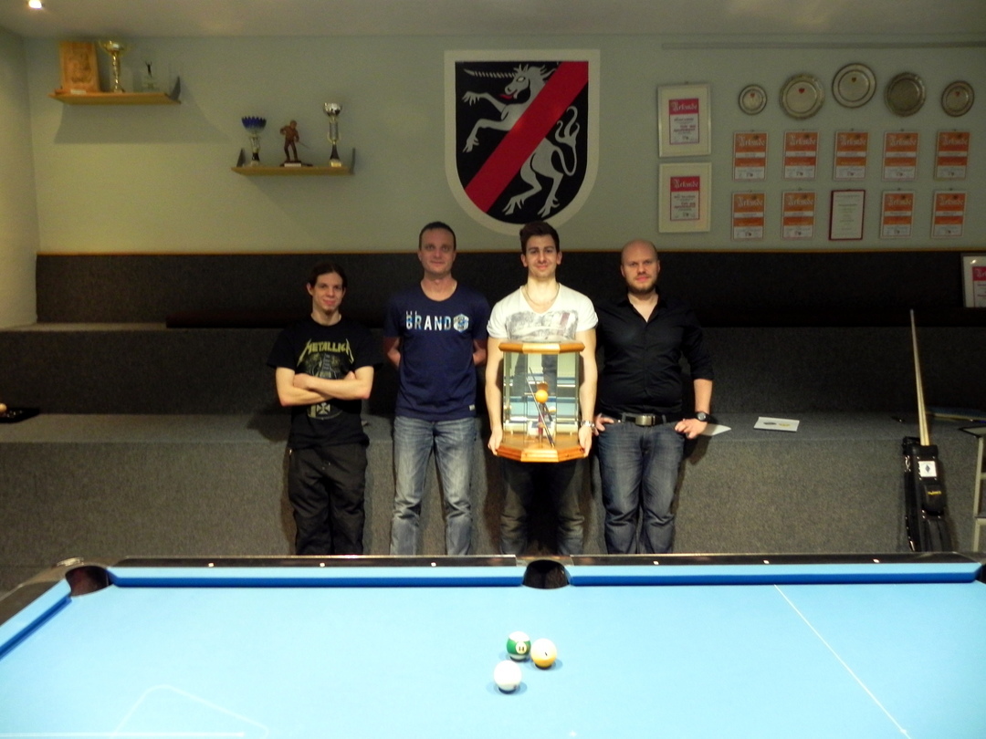 Bei der diesjährigen Vereinsmeisterschaft des Billardclub Optik Gundolf Lechaschau konnte sich Bundesligaspieler Thomas Knittel zum vierten Mal in Folge zum Vereinsmeister in der Disziplin 14/1 endlos krönen. Marc Pichler verlor das Finalspiel, während David Lechleitner und Ferdinand Schedle im Halbfinale scheiterten. |