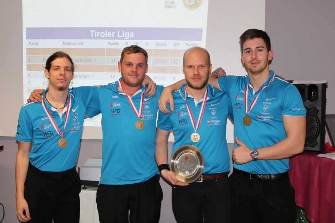 Bei der Saisonabschlussfeier des Tiroler Billardverbands gab es für den Billardclub Optik Gundolf Lechaschau einiges zu feiern: So konnte man eine Bronzemedaille in der höchsten Tiroler Liga sowie einen Meistertitel in der vierten Liga erreichen. |